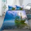 Nautisk Segelbåt Påslakan Queen King Size 3D Oljemålning Båtstil Sängkläder Set Ocean Mjuk 2/3 Delar Polyester Täcke Överdrag