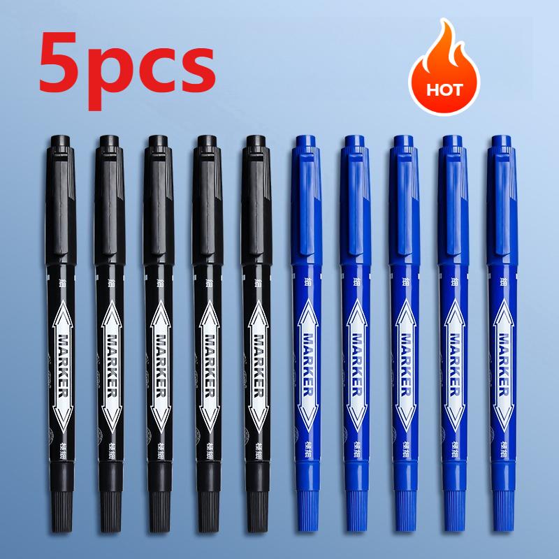 5pcs Marker Pens Double Headed Oily Marker Pens Black/Blue/Red Oil Marker Pens Art Markers Stationery Office and School Supplies