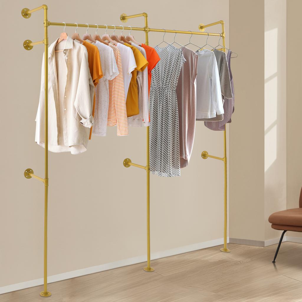 Wall Mounted Garment Rack, Gold Clothing Display Organizer, Load Bearing 110 lbs, Max Length 86.6In, Space Saving Storage Holder