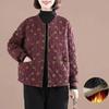 Winter Quilted Thickened Jacket, Floral Cotton-padded Jacket, Loose Large-size Printed Casual Western-style Cotton-padded Jacket