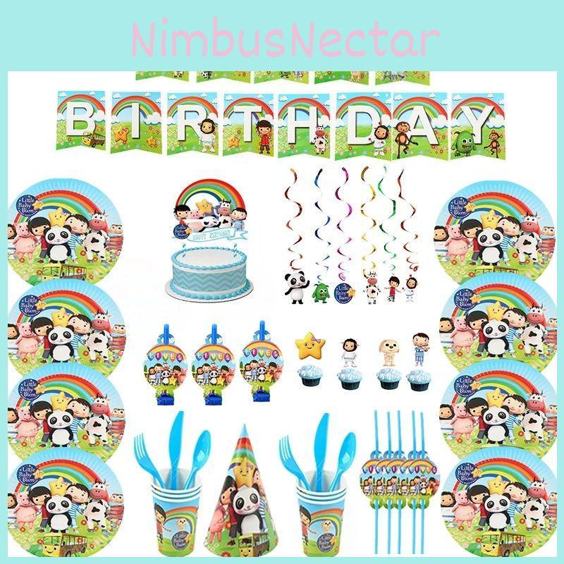 Födelsedagsfesttillbehör med liten baby-tema, festligt porslin och dekorationer