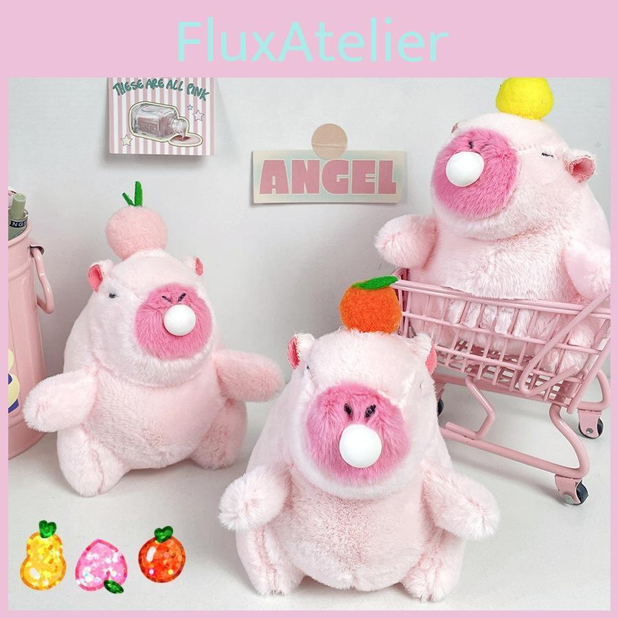 Finns i tre härliga smaker: Ananas, Apelsin och Persika. Varje gosedjur har ett lekfullt uttryck med bubblor som blåses, vilket ger en rolig touch.. Den rosa nyansen på plyschen förstärker dess sötma.