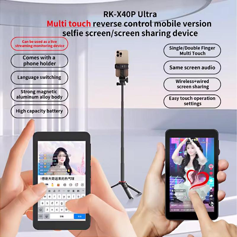 Trådlös magnetisk selfie-monitor med hållare för smartphone, vlogg, livestream, videoinspelning, telefonens bakre kamera, selfie
