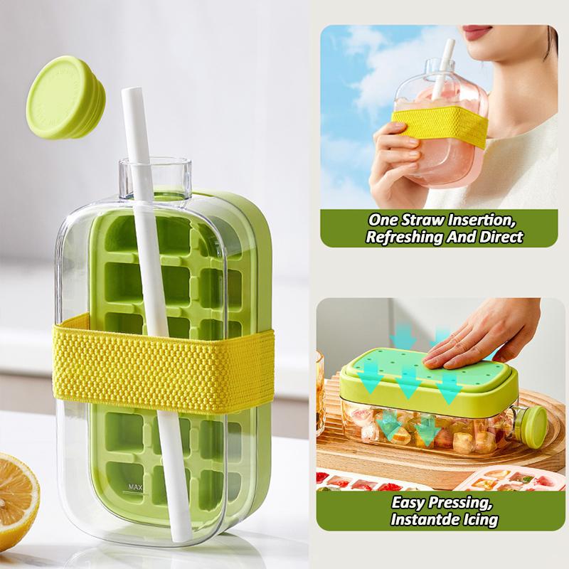 Silikon Frysfack Iskubslådor Utomhus Isvattenflaska med Lock Sugrör Lätt Demold Ismaskinsform för Öl Whiskey Juice