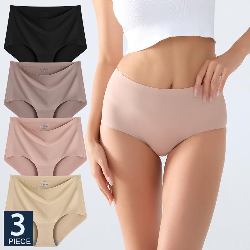 FINETOO 3Pcs Women's Panties Seamless Underwear Invisibles Briefs High Waist Full Coverage Breathable Moisture Wicking Underpant