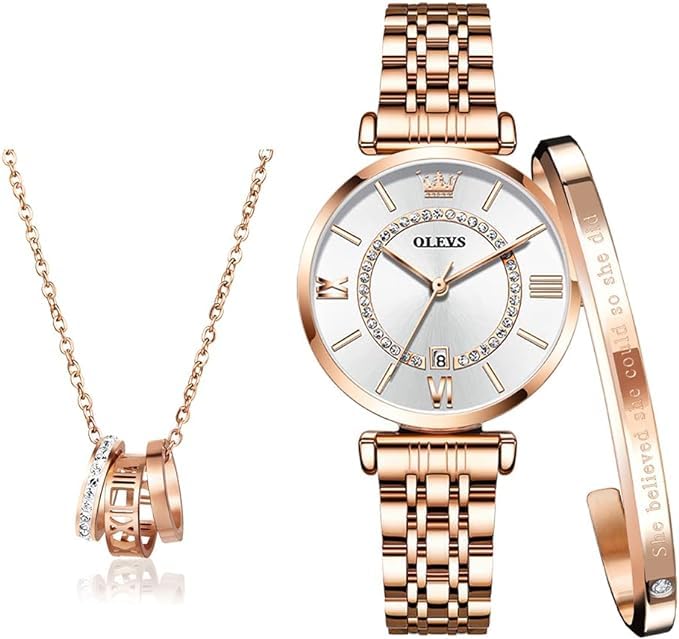 OLEVS Kvarts Söt och med ett Enkelt Rostfritt Stål och Gåva En Perfekt Dagsgåva för Kvinnors Armbandsur/Halsband, Snygg, Vattentät, Urtavla,