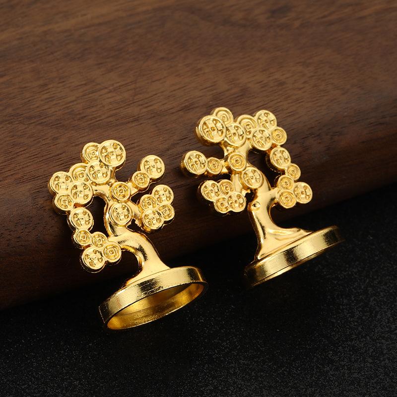 2Pcs Alloy Metal Gold-Plated Fortune Tree Small Ornament Mascot Desktop Decoration Crafts