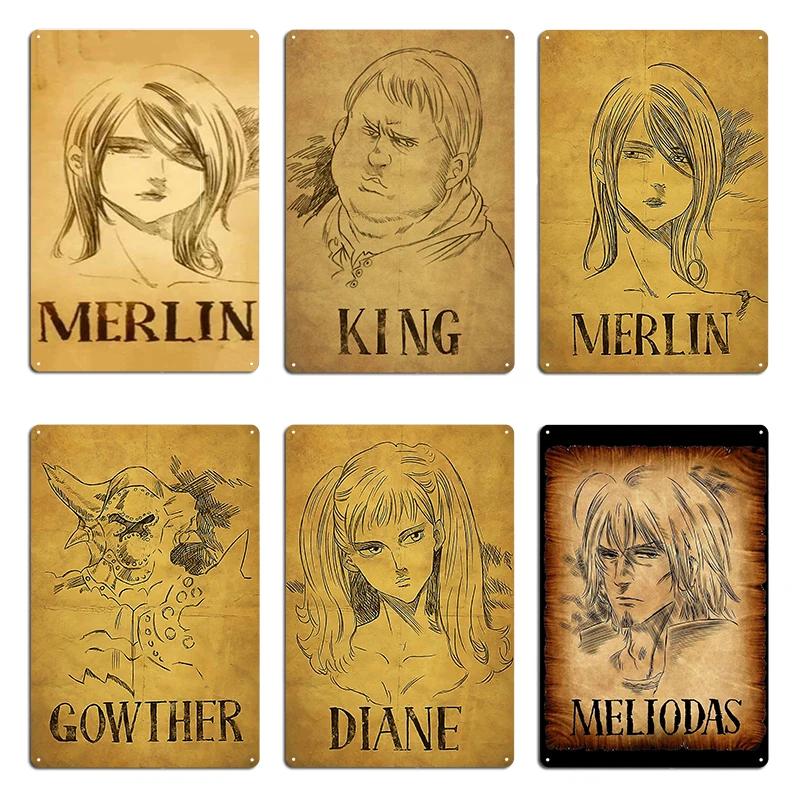 Escanor Efterlyst Metallskylt Väggmålning Tryck Garage Klubb Affisch Merlin King Gowther Diane Meliodas Efterlyst Plåtskylt Affischer