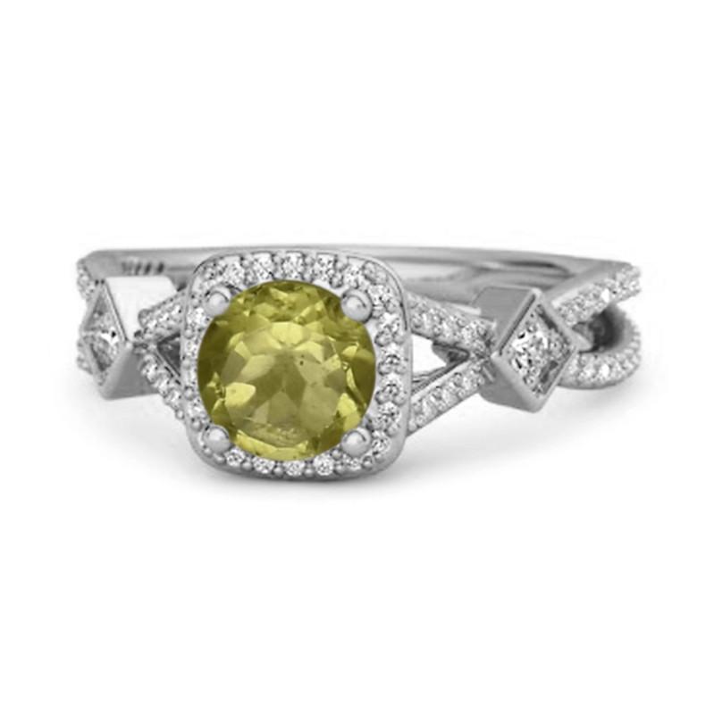 925 silver vintage ring with 6mm round Peridot (1.47 Ct), CZ halo, and art deco band. A bold and elegant green gemstone design.