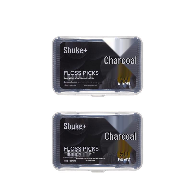 Suke Bamboo Charcoal Deep Clean Floss Picks, 100 Count