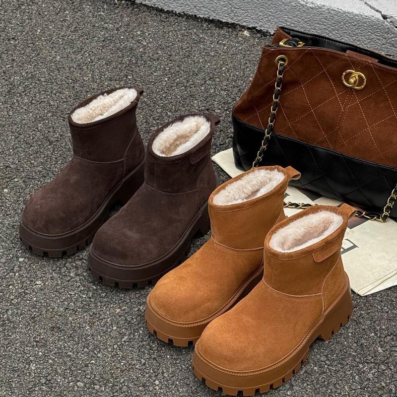 Thickened and velvet snow boots women's new winter leather real wool cotton shoes, velvet warm thick-soled non-slip short boots