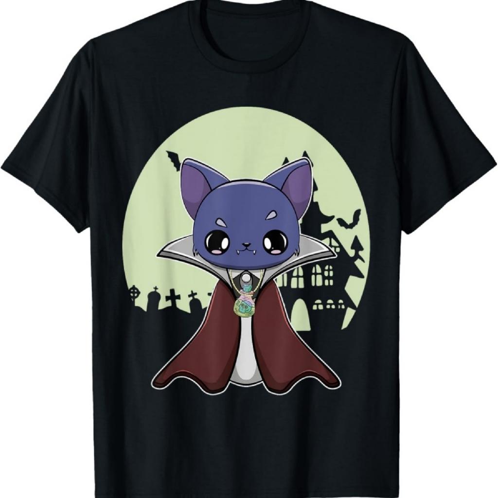 Svart katt vampyr Dracula och magisk glaskula för Halloween T-shirt