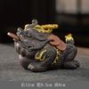 Lycklig Gyllene Groda Padda Tehusdjur, Högkvalitativ Yixing Zisha Lera Uppfödbar Penga Groda Statyett för Rikedom & Välstånd, Tebord De