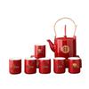 Chinese Traditional Wedding Decoration, Red Teaware, Porcelain, Kung Fu Teappot, Kettle, Double Happiness, Tea Service Gifts
