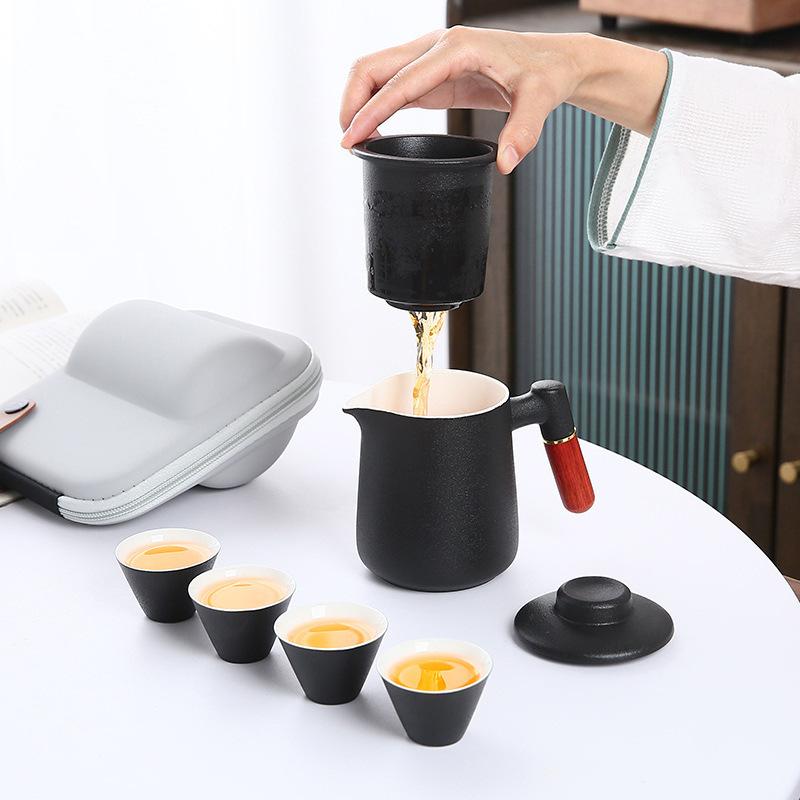 Kinesiskt Kung Fu Te-set Bärbart Utomhus Resa En Kannas Fyra Koppar Set Camping Kök Picknick Hotell Keramiskt Te-set Gåva 2025 Ny