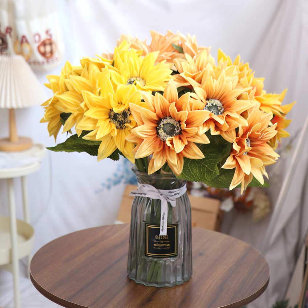 Realistic Artificial Sunflower Bouquet Elegant Plastic Fake Flower Decorative Simulated Sunflower Holiday Party Wedding