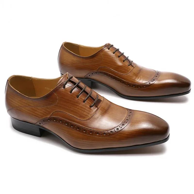 Fashion Men's Luxury Genuine Leather Oxford Shoes Size 13 Italian Style Dress Wedding Brogues Formal Laced Footwear