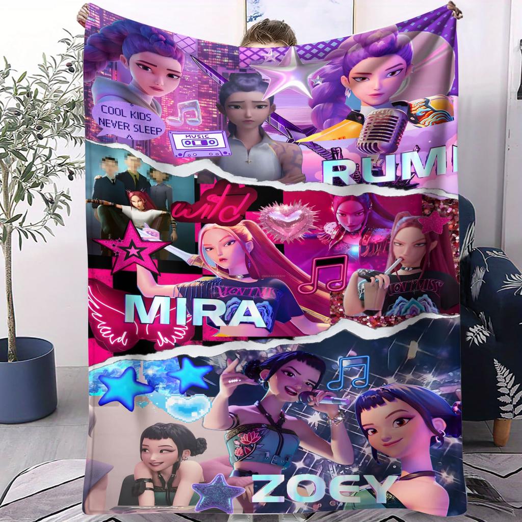 K-Pop Demon Hunters Huntrix Flannel Blanket Neon Warrior Girl Group Design Soft Throw for Bedroom Sofa Concert Fans Gift Teens