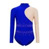 Flickor Gymnastik Dansuppvisning Dräkt Mock Turtleneck Långärmad Glittriga Strass Färgblock Bodysuit