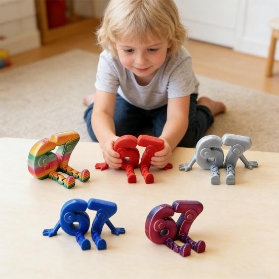 Crafted using advanced 3D printing technology, this 67 desk ornament is made from high-quality, eco-friendly PLA, ensuring a smooth, delicate surface and durable structure. Its design creatively merges the numbers "6" and "7" into an imaginative figure, with "6" forming the head and "7" shaping the body and legs, resulting in a visually striking and playful decoration.