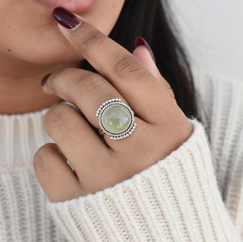 Prehnite Statement Ring, 925 Sterling Silver, Handcrafted Round Cut Gemstone Ring, Minimalist Jewelry
