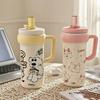 Snygg Mugg med Stor Kapacitet Söt Sugrörskopp Flickas Kontorsmugg Keramisk Mugg med Lock Födelsedagspresent