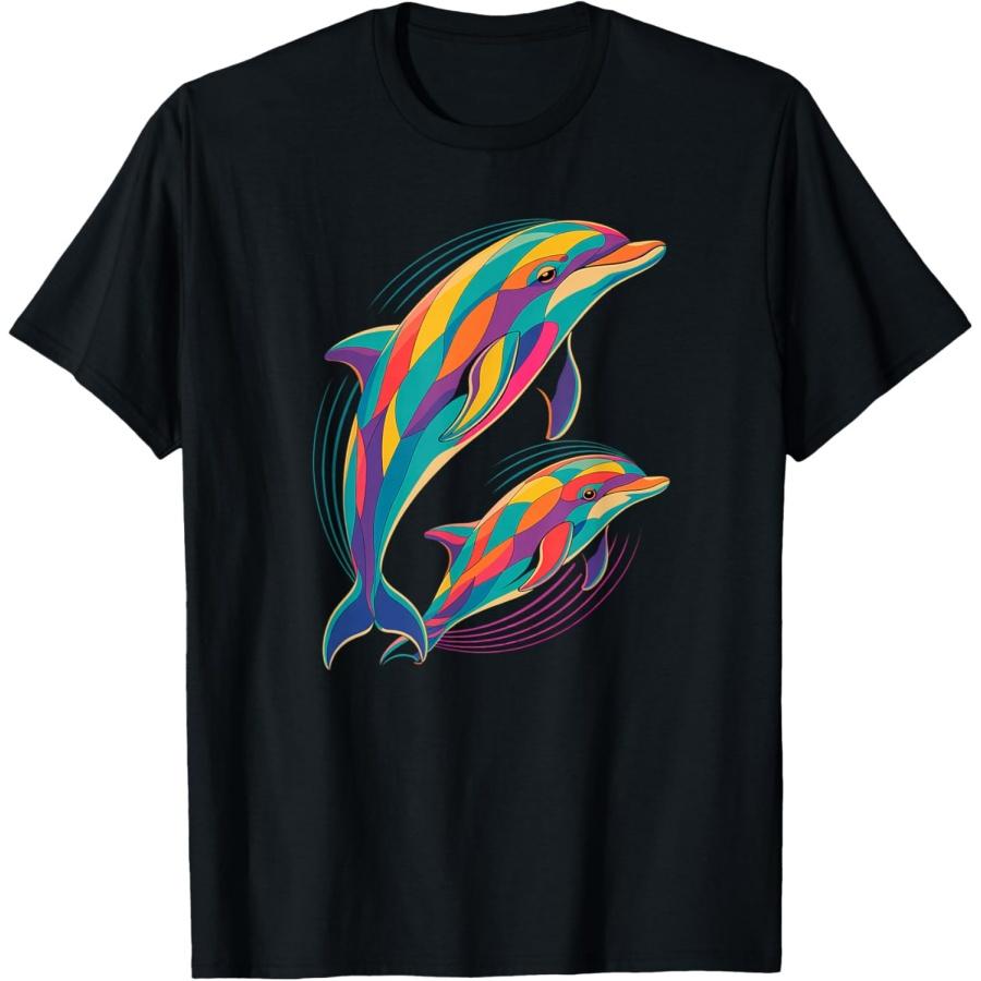 Geometrisk Delfinkonst Visionär Ande Hav Totem T-shirt(3)