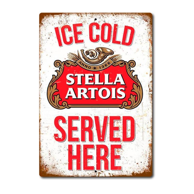 Stella Artois Retro Ölplåtskylt, Vintage Metallväggkonst för Bar Café