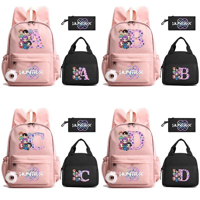 3Pcs/set 26 English Letter Kpop Demon Hunters Printed Backpack with Lunch Bag Pengcil Case for Teenager Girl Boy Large Capacity Bookbag Travel Bag