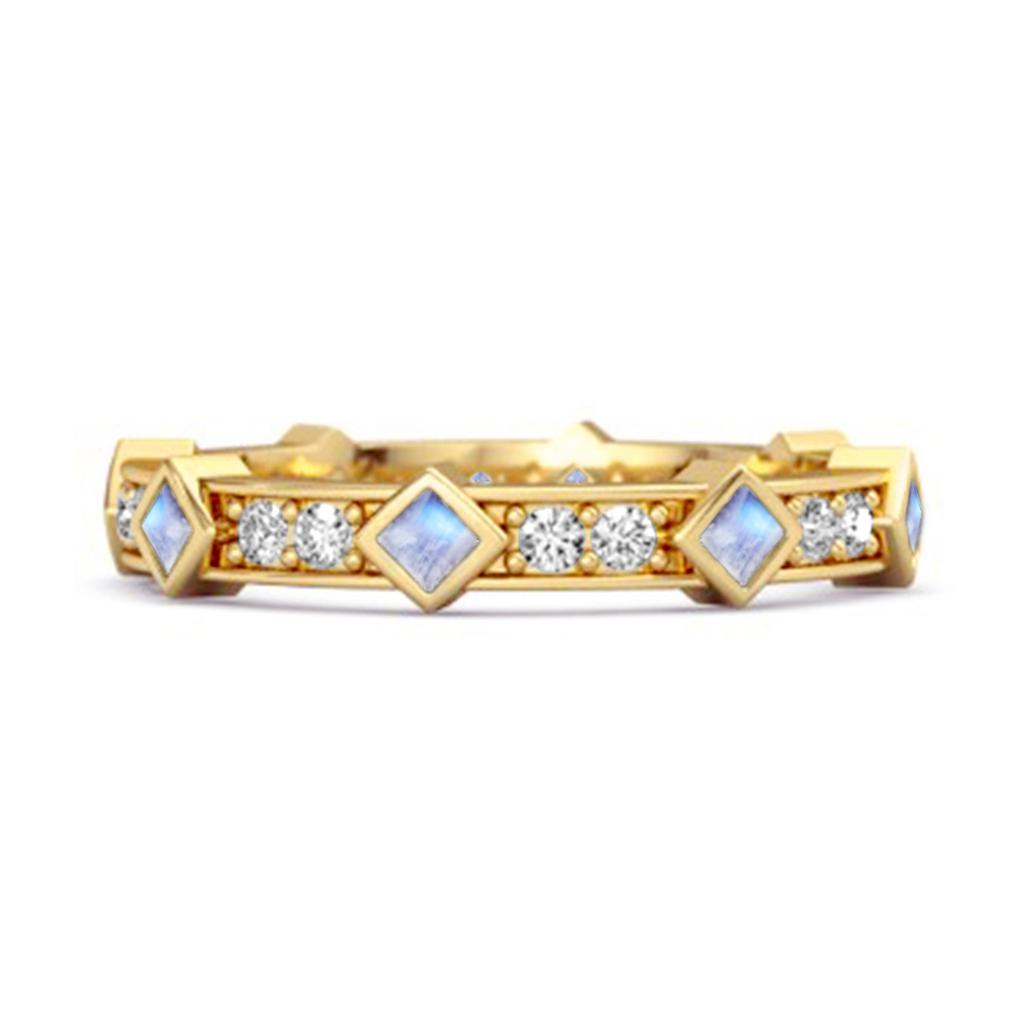 925 sterlingsilver evighetsring med 2 mm fyrkantiga månstenar (0,56 ct). Ett mjukt, lysande band med modern geometrisk känsla.