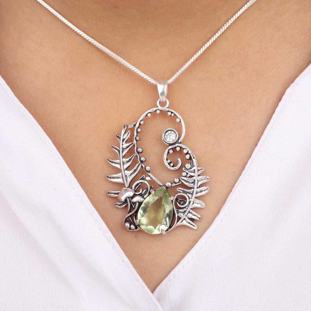Green Amethyst Silver Pendant, 925 Sterling Silver Amethyst Gemstone Jewelry For Wedding Gift CP-42-11