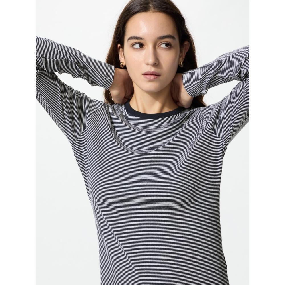 The UNIQLO Japan Soft Rib T Long Sleeve is a women's t-shirt designed with a sleek fit and appropriately long sleeves as styling points. It is also suitable for layering with sweatshirts or knits, making it a perfect fit for everyday looks.