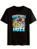 Roliga VAD SOM HELST FÖR HUZZ Grafiska T-shirts Herr Dammode Casual T-shirt 100% Bomull Lös Oversized T-shirt