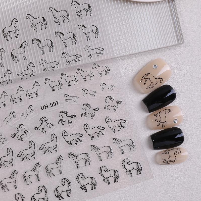 Cute Cartoon Minimally Hand-Painted Pony Nail Stickers Embossed Nail Stickers Diy Nail Art Decoration Manicure Sticker