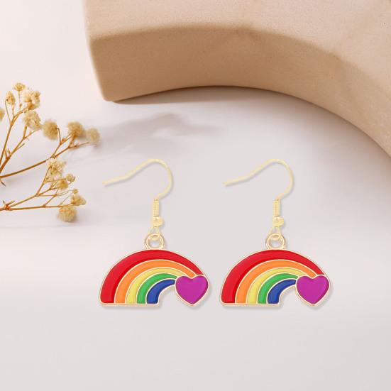 1 Pair Women Earrings Rainbow Color Colorful Heart Shape Stainless Anti-allergy Lightweight Lady Ear Jewelry Women Hook Earrings Dangle Earrings
