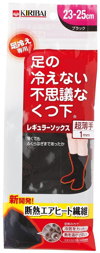 Kiribai Mysterious Regular Designed for Cold Sizes 1 Pair Chemical's Cold-Foot Socks, Socks, Ultra-Thin, Feet, 23cm-25cm, Black, (2 Socks)