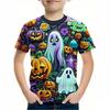 Boys' clothing, funny and terrifying pumpkin pattern T-shirt, boys' and girls' Halloween short sleeved shirt, children's Halloween gift party T-shirt
