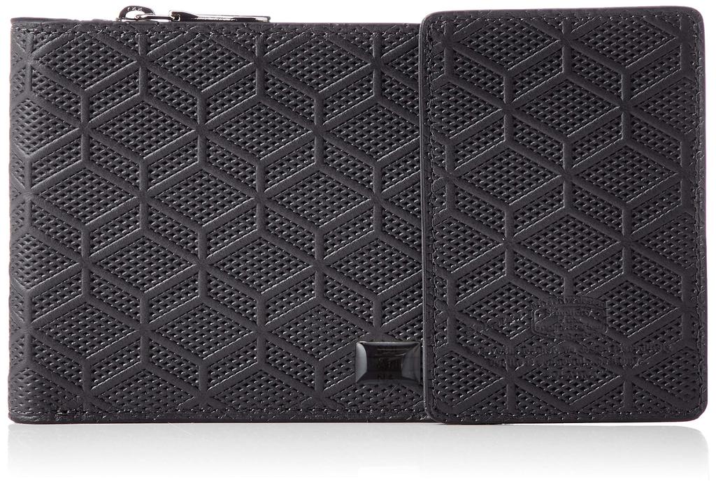Soratina Folding Wallet with Fractal Italian Embossed Leather Pass Case, Black