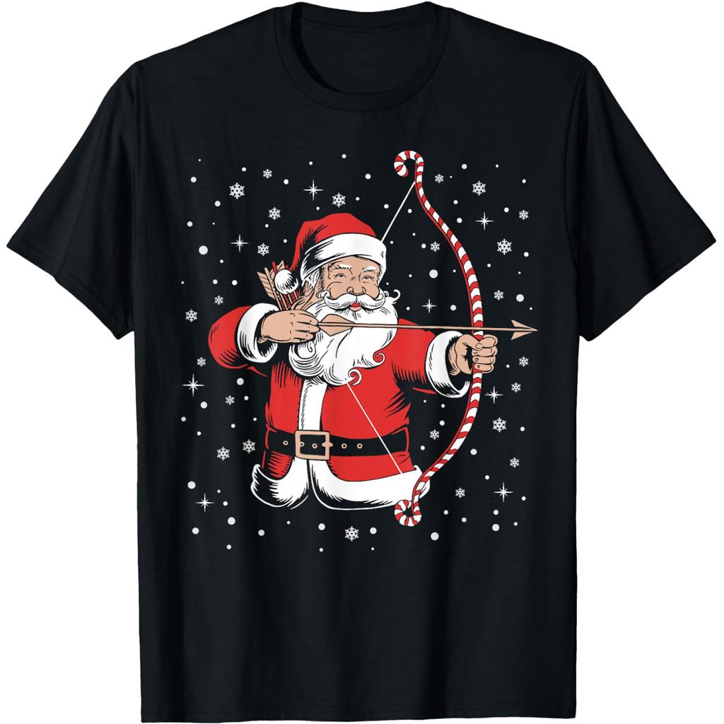 Funny Xmas Bow Santa Archery Christmas T Shirts Men Women Cotton Humor Streetwear Tee Shirt Short Sleeve Unisex Loose Clothing