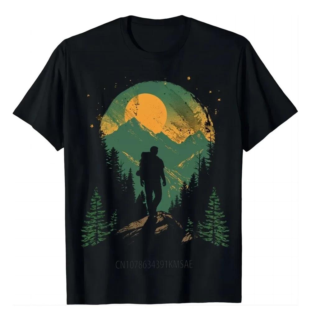 Retro-style Hiker T-shirt with Mountainous Print T Shirts Graphic T Shirts Mens Clothes Tops Camisas Streetwear Ropa Hombre