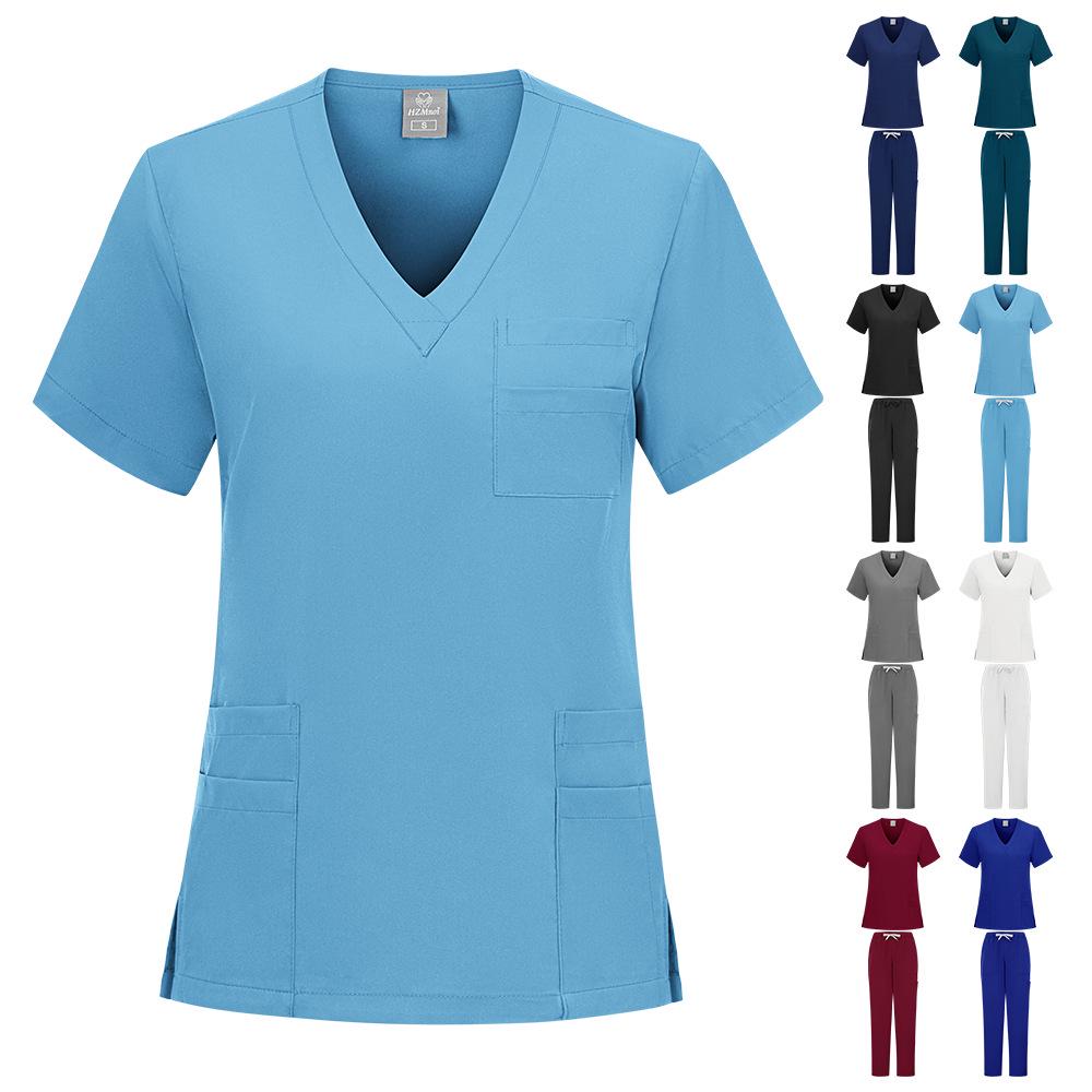 Denna högkvalitativa skrubbdräkt är speciellt designad för kvinnor och erbjuder komfort och funktionalitet för yrkesverksamma inom hudvård, samt sjuksköterskor och kirurger i operationssalar och isoleringsmiljöer.. Denna kortärmade skrubbdräkt är tillverkad helt av slitstark polyester och är lätt och andningsbar, vilket säkerställer rörelsefrihet och komfort under långa arbetspass.. Dess genomtänkta konstruktion ger ett professionellt utseende samtidigt som den uppfyller kraven i en snabb medicinsk miljö.. Idealisk för att upprätthålla hygien och prestanda, är denna skrubbdräkt ett pålitligt val för sjukvårdspersonal.