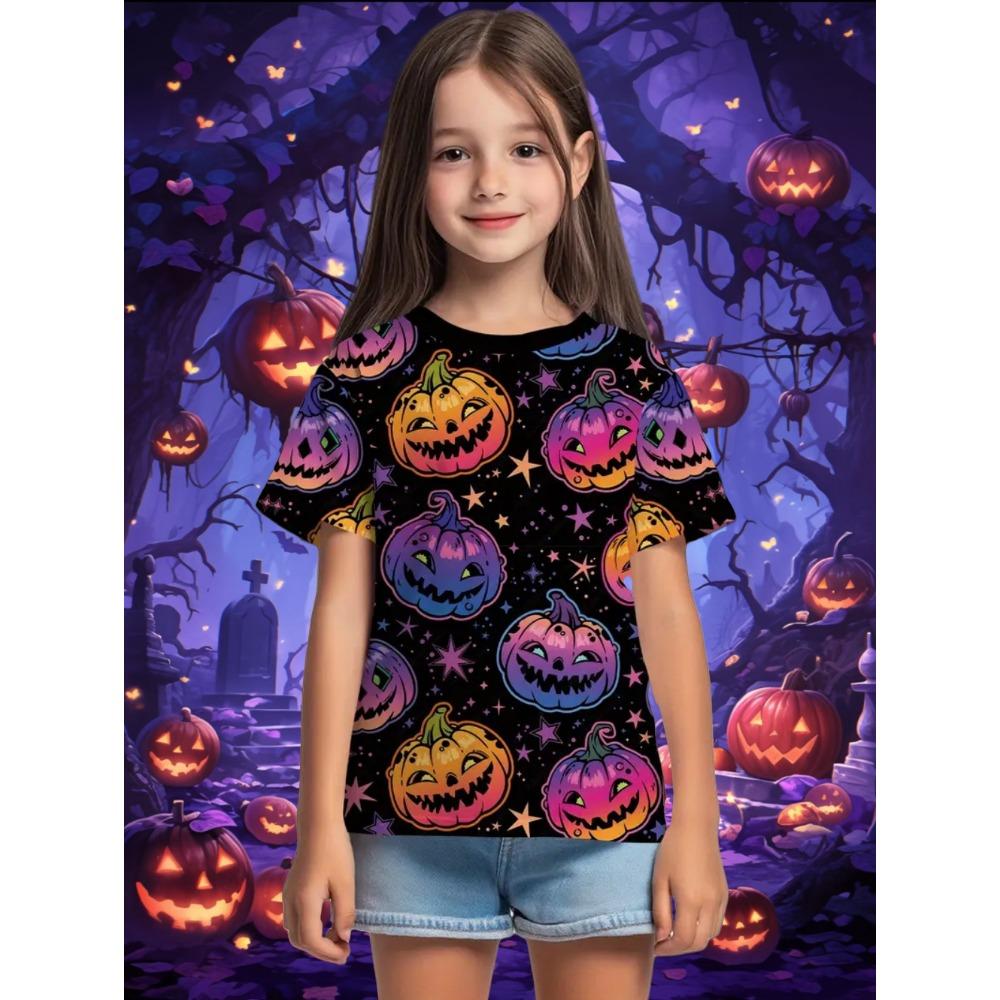 Girl Clothes Funny Pumpkin Graphic T Shirt Halloween Boys Girls Summer Short Sleeves T-Shirt 2-13y Halloween Gift Party T-Shirt