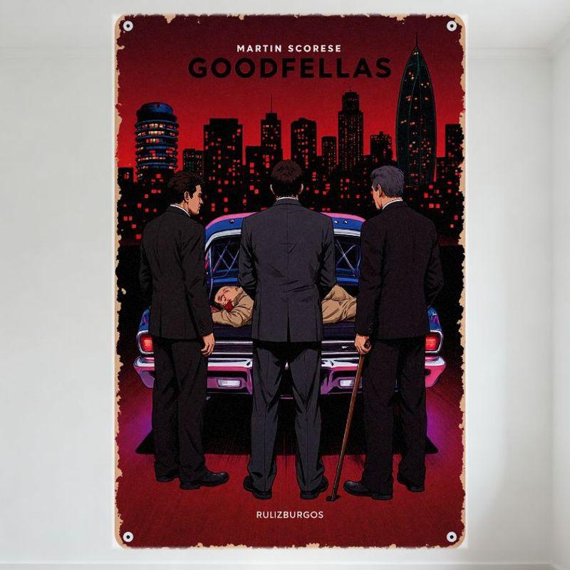 Goodfellas Martin Scorsese Retro Filmplåtskylt Nattstadsscen Gritty Crime Drama Väggdekor för Bar Man Cave Hemmakontor Konst