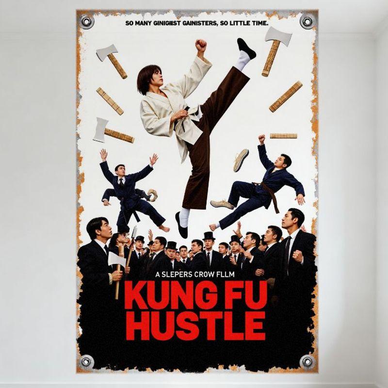 Kung Fu Hustle Stephen Chow Film Metallplåt Skylt Vintage Kampsports Komedi Väggplatta för Hem Bar Café Dekor