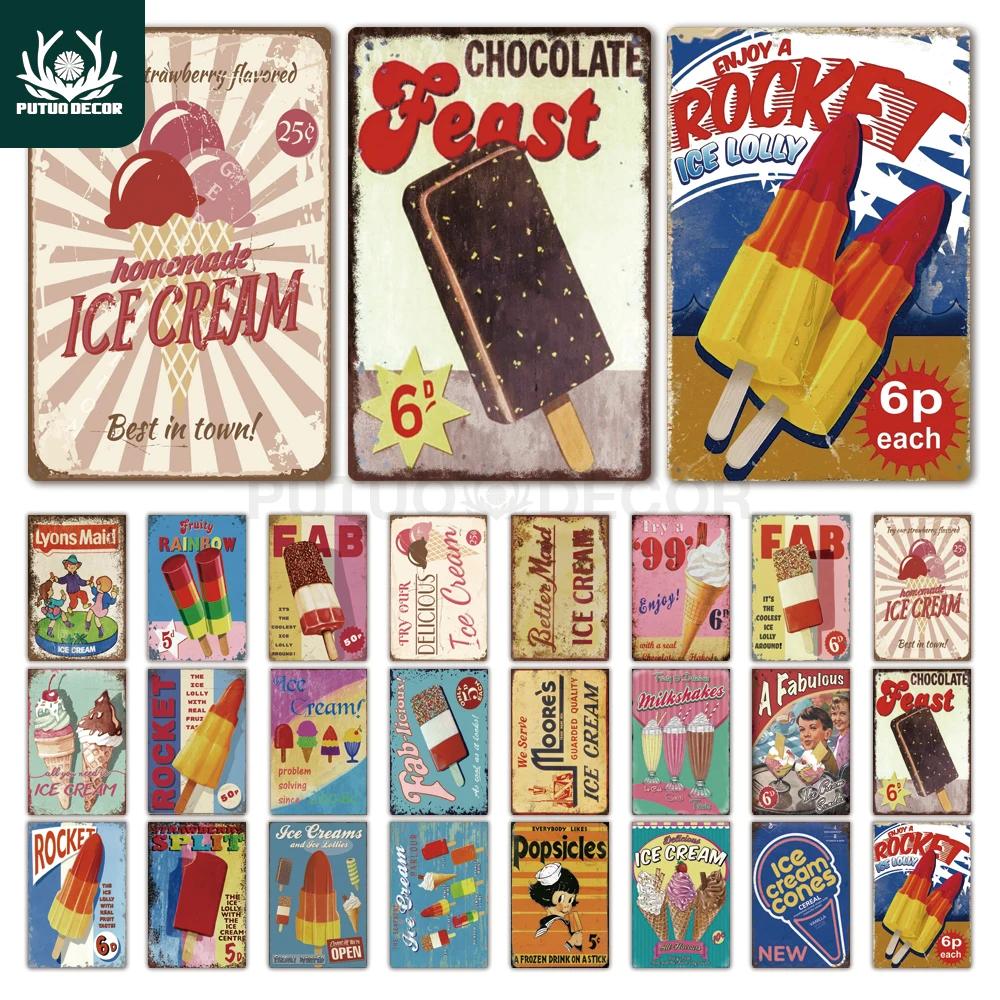 Putuo Decor Ice Cream Tin Sign Plaque Metal Plate Vintage Ice Lolly Retro Wall Art Poster for Dessert Shop Iron Painting