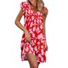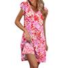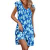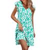 Dam Sommarklänning Volangärm V-ringning Korta Klänningar Mode Casual Flödande A-linje Swing Solklänning Med Ficka