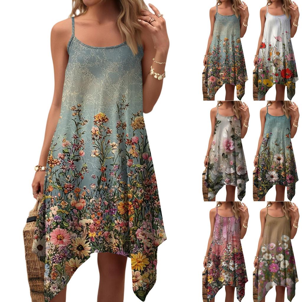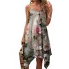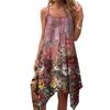 Dam sommar vardaglig vintage blommig tryck rund hals justerbar hängselklänning med fickor