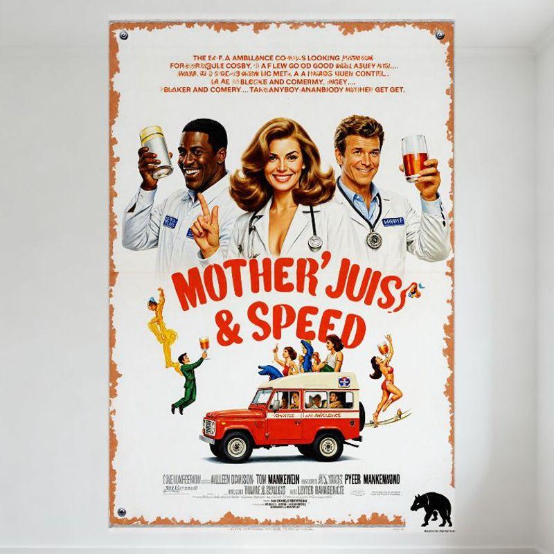 Vintage 'Mother, Jugs & Speed' Movie Poster Metal Tin Sign, Retro Medical Figures & Ambulance Art, Home Bar Cafe Wall Decor, Man