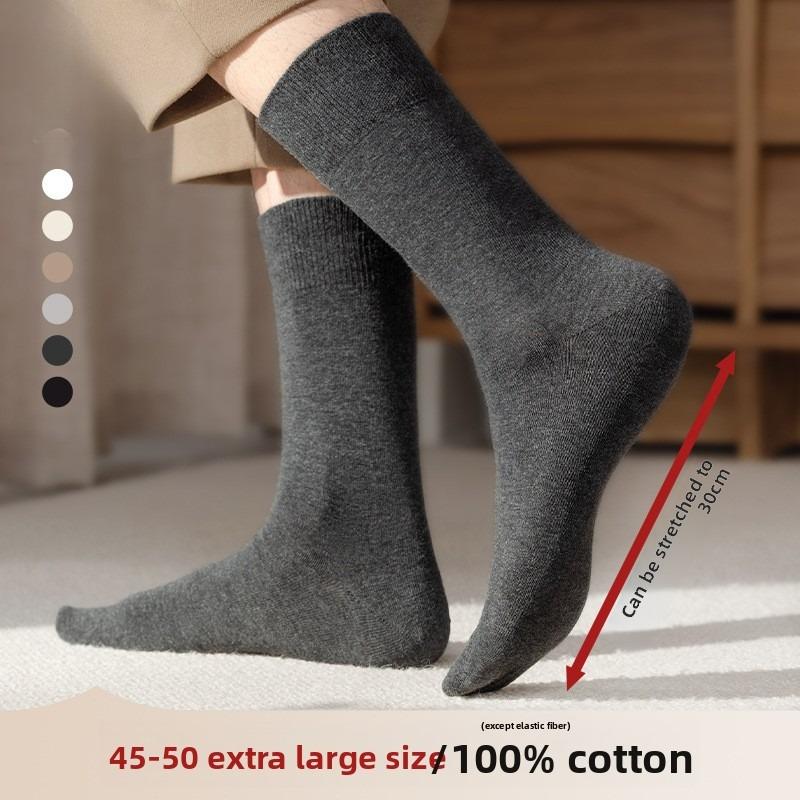 Loose Large-sized Cotton Mid-calf Socks for Men, Black and White All-cotton, Sweat-absorbing and Odor-resistant