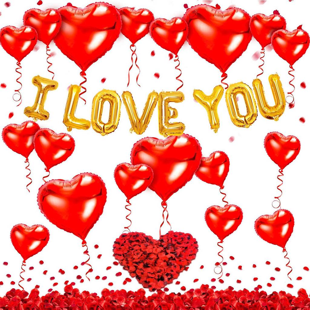 Jag älskar dig ballonger hjärtballonger kit med rosenblad för bröllop, födelsedag, jubileum, fest, alla hjärtans dag-dekorationer